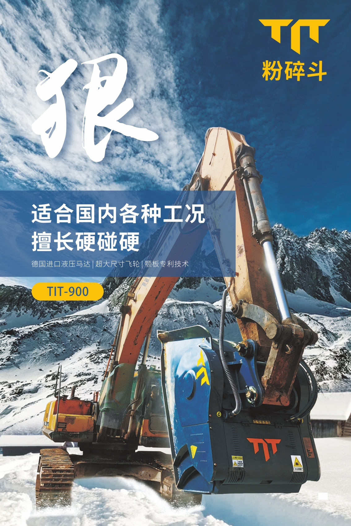 TIT,源自Titan的縮寫,原指古希臘神話中力大無窮的威猛之神,借意本產品剛勁有力,產能高效。TIT粉碎斗,也稱破碎斗,顎式破碎斗,是一款創新型挖掘機屬具,掛于挖掘機大臂上,可快速將工程惰性材料破碎成極具價值的工程用料。隨著國內基建行業展,基于市場對經濟化、效率化、環?;牧系拇罅啃枨螅扑槎穼V泛應用于多種物料破碎場景。 |